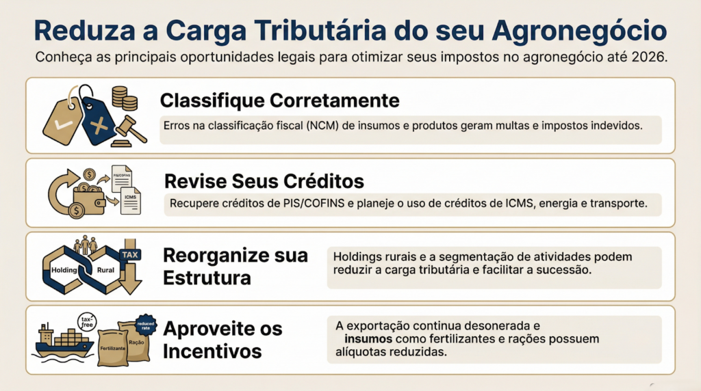 Isso significa que, para muitos produtores, a redução de impostos no agronegócio pode ser potencializada pela correta apuração de créditos e pelo enquadramento adequado das operações.